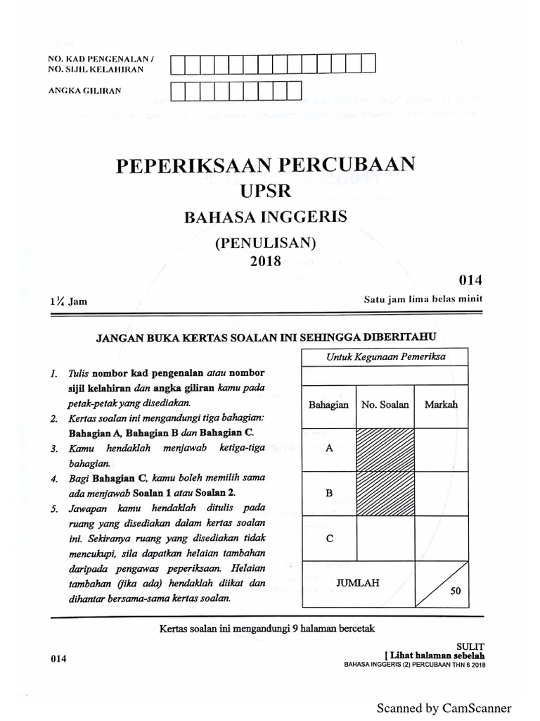 Koleksi Soalan Percubaan Upsr 2018 Bahasa Inggeris Penulisan Sumber Pendidikan