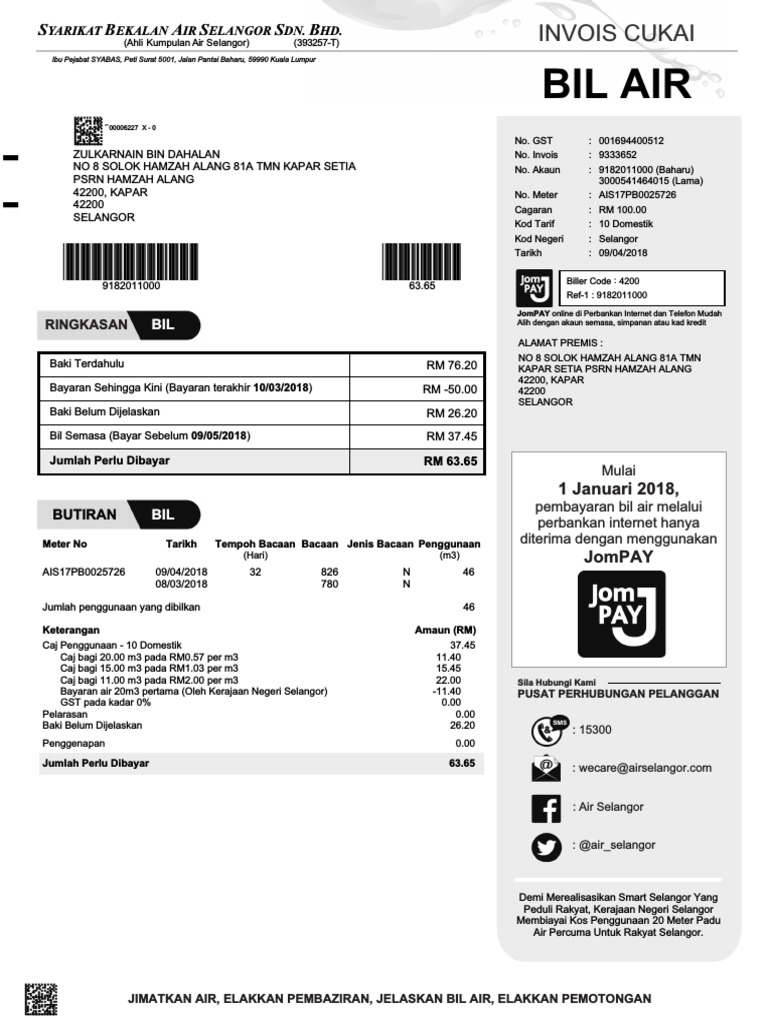 Bil Syabas Yang Baru Bermula 1 Januari 2018 Tak Boleh Bayar Terus Dari Akaun Macam Dulu Lagi Nukilan Budak Flat
