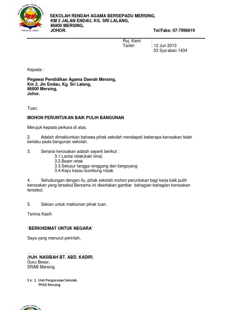 Contoh Surat Rasmi Permohonan Bantuan Peralatan Bridalbiot