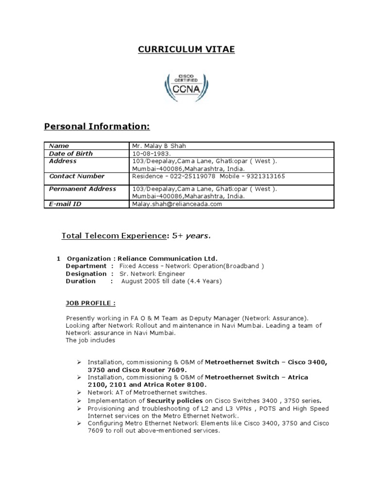 Malay Resume Cisco Certifications Cisco Systems