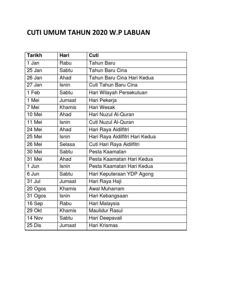Senarai Cuti Umum Di Malaysia Tahun 2015