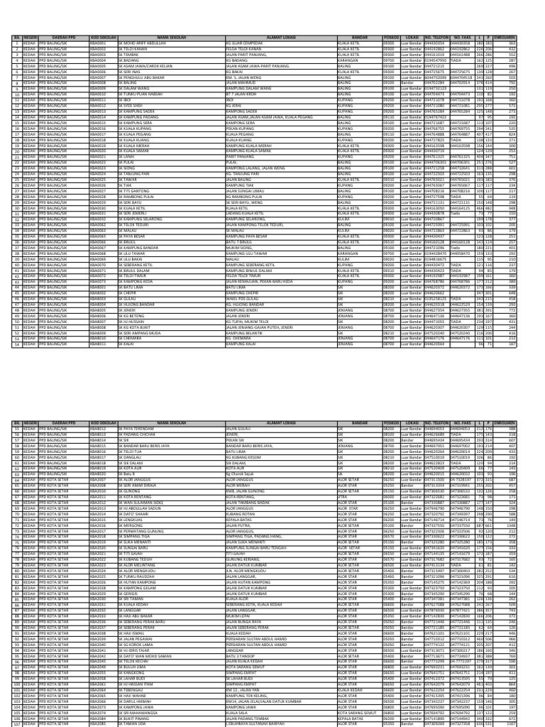 Senarai Sekolah Rendah Di Kedah Seperti Pada Emis